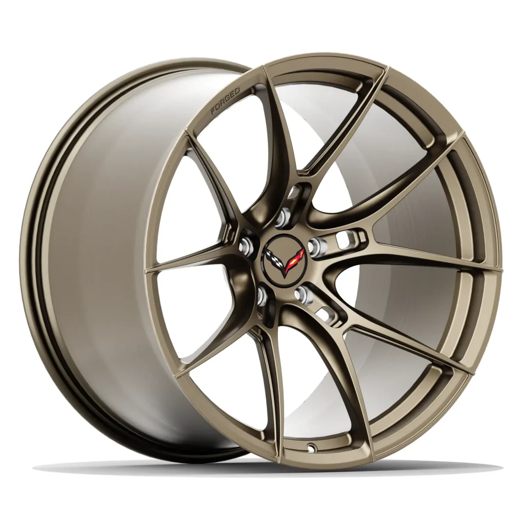 Forged FR-5 wheel is precision-engineered exclusively for the Corvette C8 Z06, ZR1, and E-Ray platforms, delivering a perfect blend of aggressive styling, lightweight performance, and factory-precise fitment. Sized at 20×10 in the front and 21×13 in the rear, this setup is designed to accommodate the OEM tire sizes while achieving a more aggressive stance and deeper concavity than stock wheels. Constructed from aerospace-grade 6061-T6 forged aluminum, this wheel offers reduced unsprung weight, improved handling, and maximum durability under high-performance driving conditions. Fully customizable in endless finishes, it’s the ultimate forged wheel upgrade for C8 Corvette owners looking for tailored performance and show-stopping style.